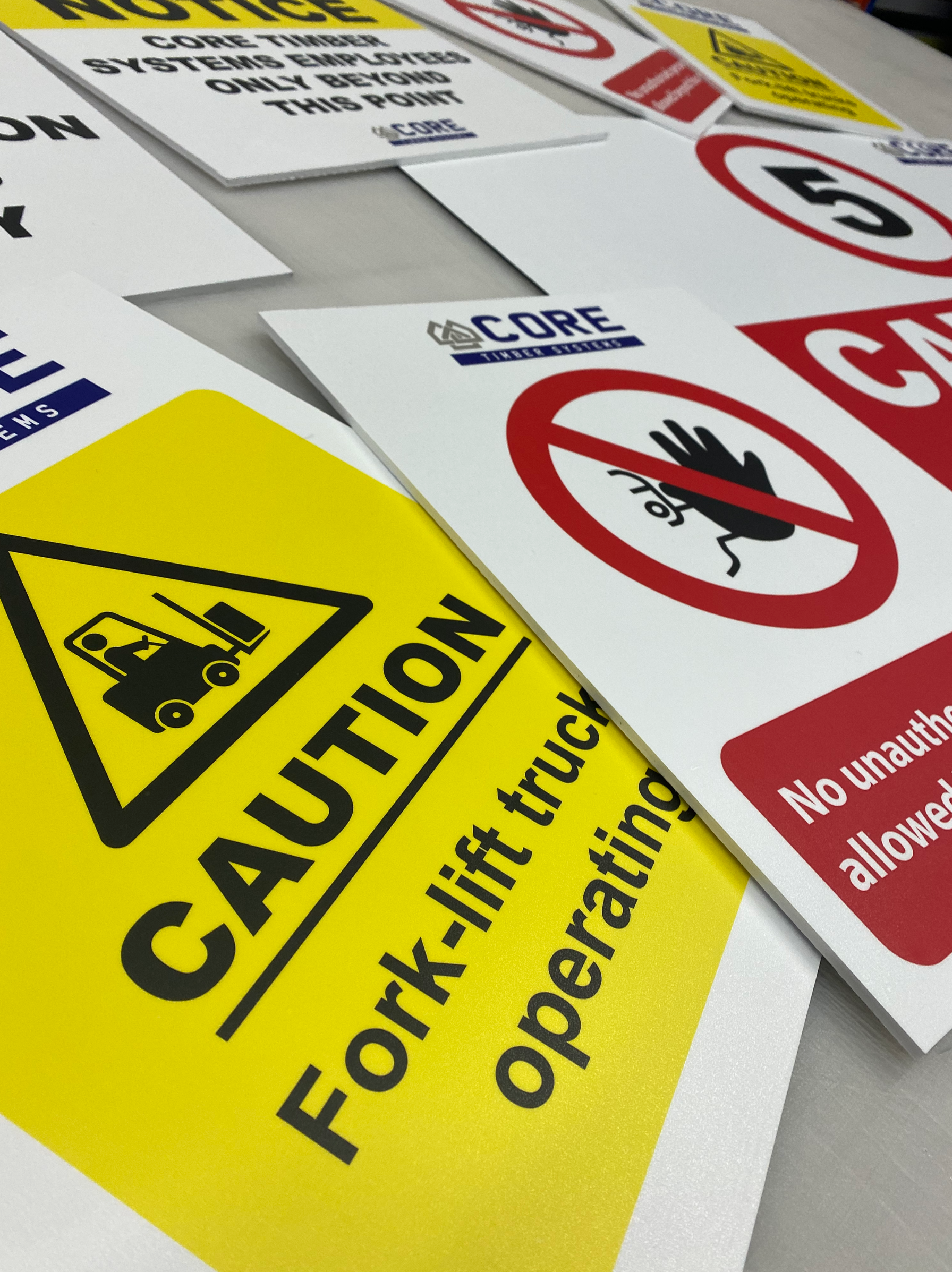 Durable engraved traffolyte safety signs and labels. Perfect for office, public and industrial environments as the material is extremely durable.